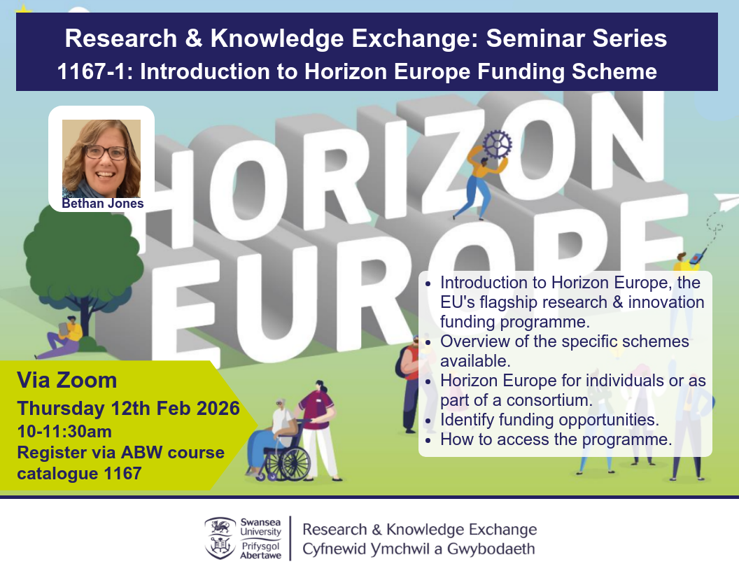 Speaker's BiographyEuropean Research Development Manager working across the three faculties at Swansea University to promote Horizon Europe and related schemes, support with Horizon Europe submissions and provide funder guidance.